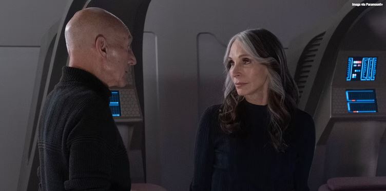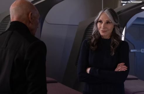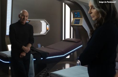 However, Beverly pushes him to go with Riker, and she does so for a good reason: there are clearly portions of their conversation that would have been difficult to address in front of him, and leaving with Riker would allow them to avoid such awkward situations. Even if the revelation in Episode 2’s quietly made for a meaningful and riveting narrative, Picard still has a lot of questions to which he demands answers, beginning with “why.”